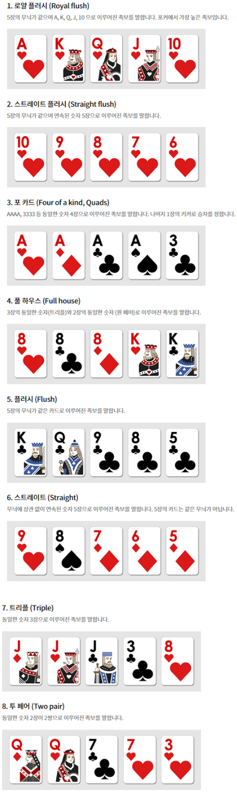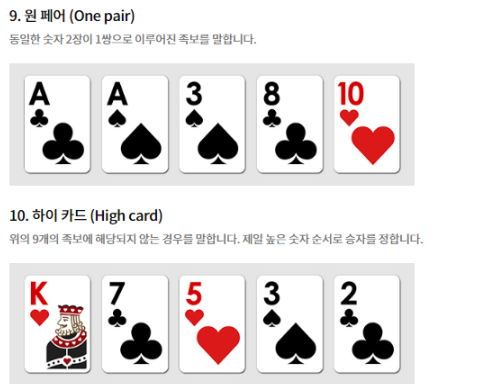 이상입니다. 텍사스 홀덤 족보는 이것만 알아두시면 됩니다.